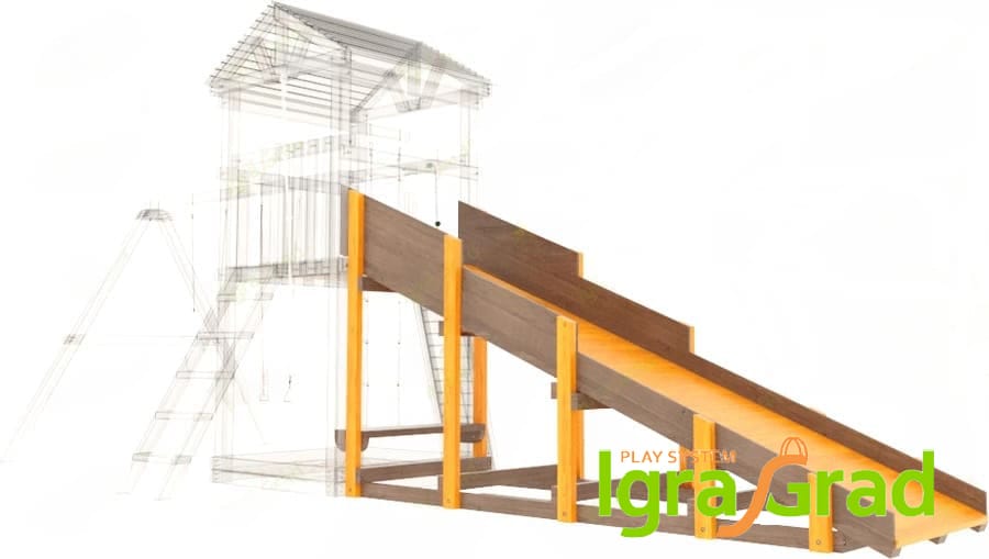 Конструкция горки выполнена из сухой древесины и обработана нетоксичной пропиткой на водной основе, что гарантирует безопасность для здоровья ваших детей.