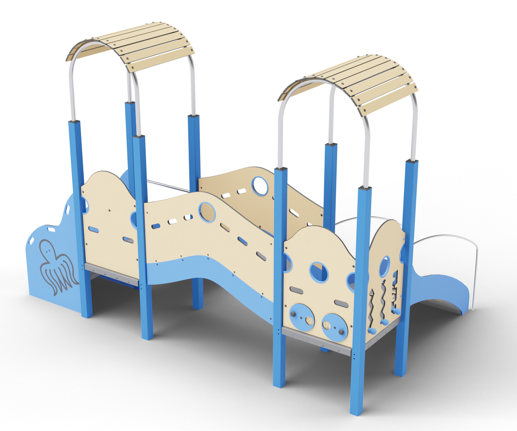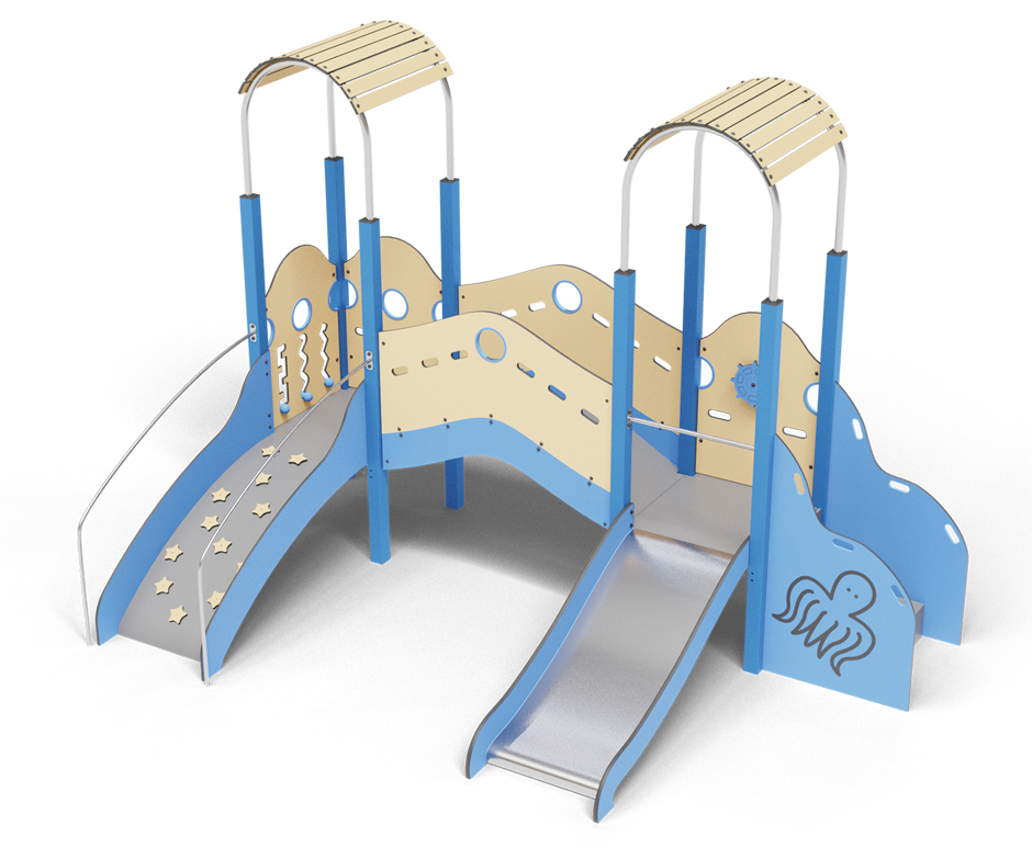 Уникальный детский игровой комплекс из серии «МОРЕ» открывает невероятный простор для детской фантазии. Только самые качественные материалы и абсолютно безопасная конструкция, которая отвечает всем требованиям ГОСТов и САНПиН. Наш игровой комплекс включает в себя разнообразные элементы, такие как горка, лестница, перила, башни, мост, а также горка с элементами скалодрома, украшенная выступами в виде морских звезд. Эти игровые возможности подарят вашим детям бесконечные возможности для активной игры и развития.