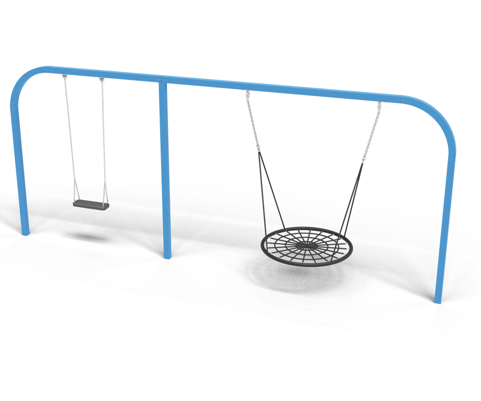 Представляем вам уникальные двойные детские качели, которые сочетают в себе обычные качели и качели-гнездо, соединенные единым креплением.