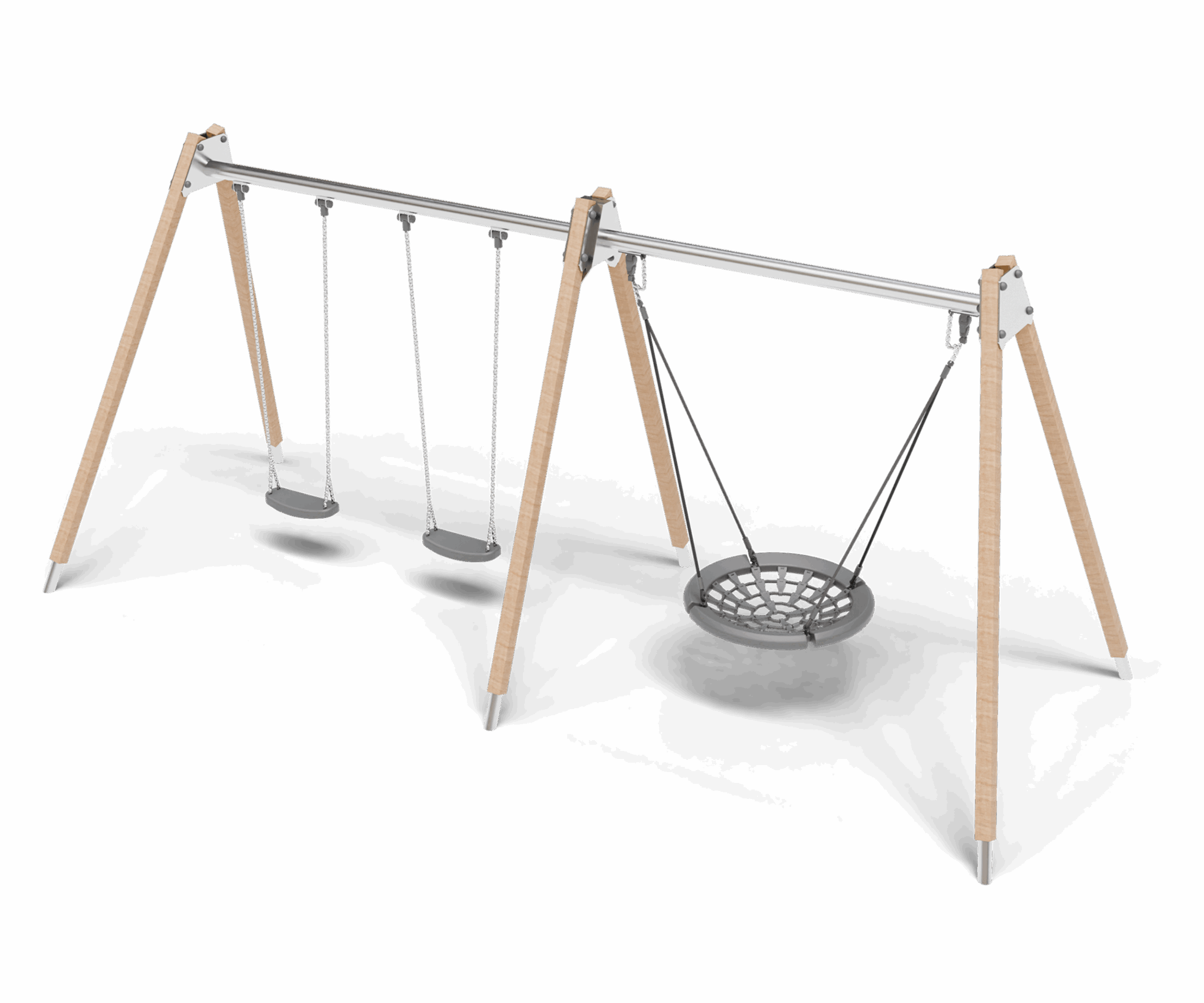 Многофункциональные качели представляют собой отличное дополнение для оживленной детской площадки в плотно заселенном жилом районе.