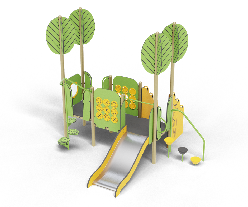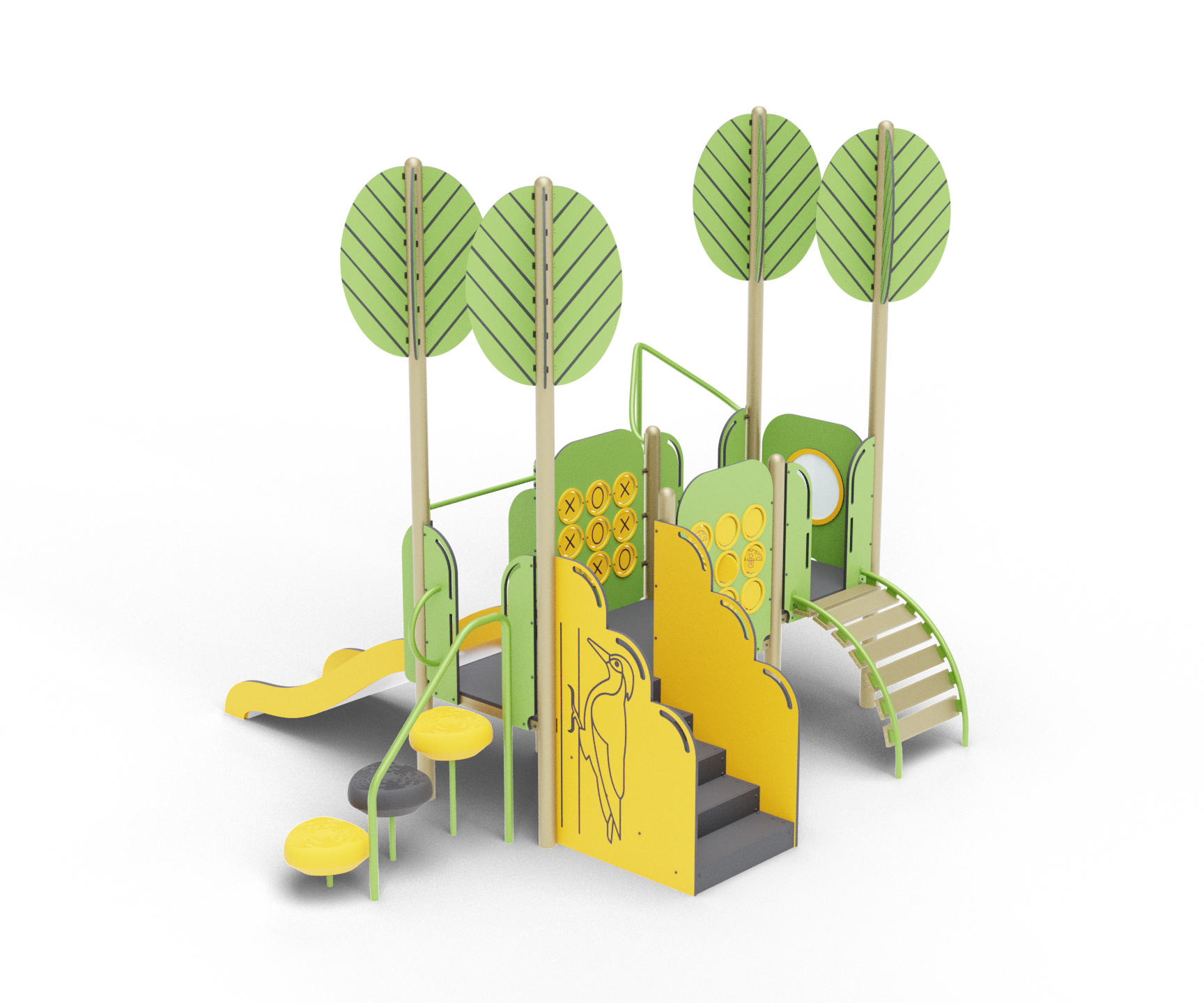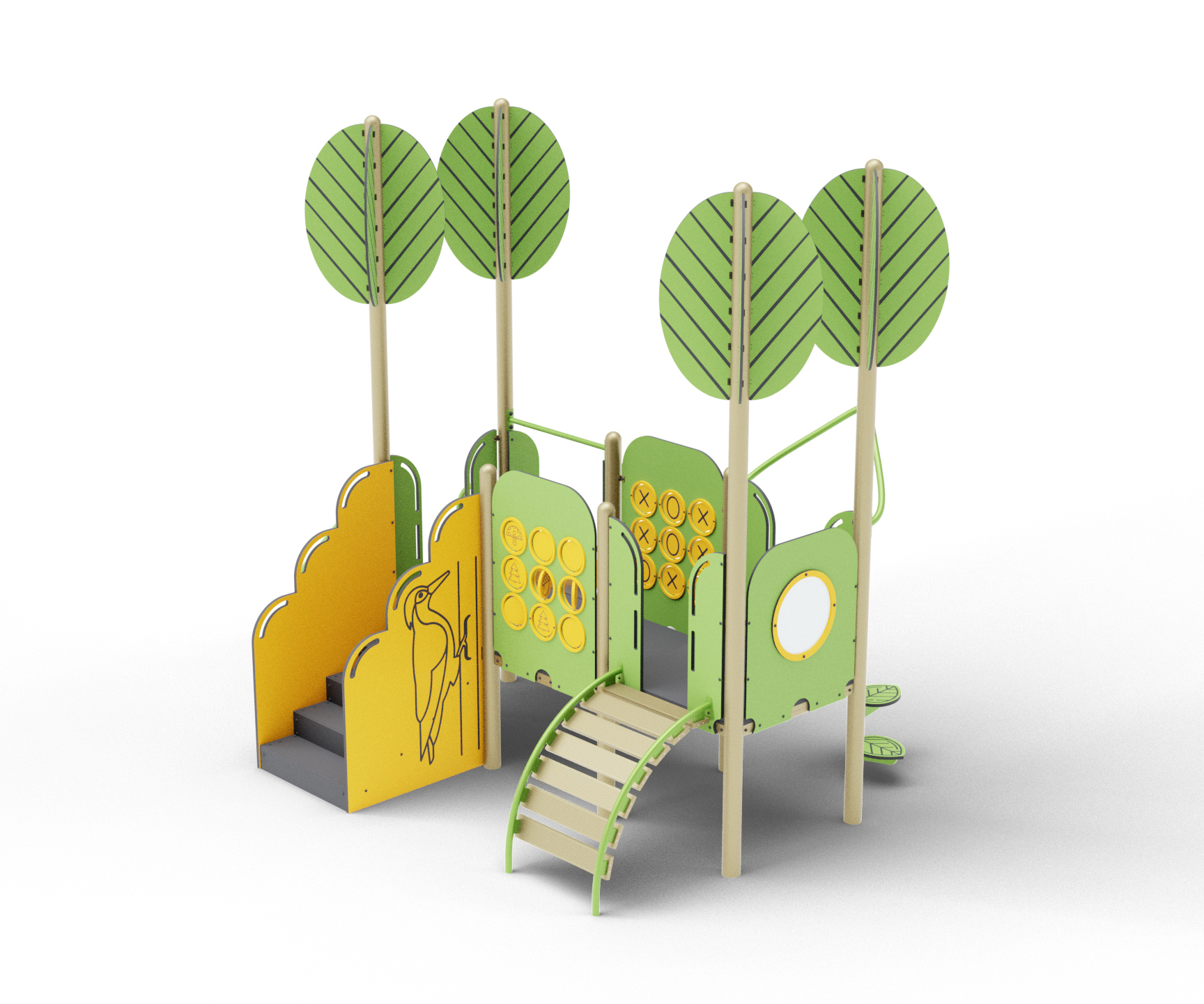 Добро пожаловать в захватывающий мир детских игр и веселья с нашим малым игровым комплексом в стиле «Лес Чудес»! Наша игровая площадка предлагает яркие и креативные развлечения для вашего малыша, погружая его в удивительный мир фантазии и веселья. Необычные подъемные элементы, игровые панели и горка непременно заинтересуют юного исследователя. Этот детский игровой комплекс станет идеальным местом для активного времяпровождения вашего ребенка, соединяя в себе элементы леса и волшебства.