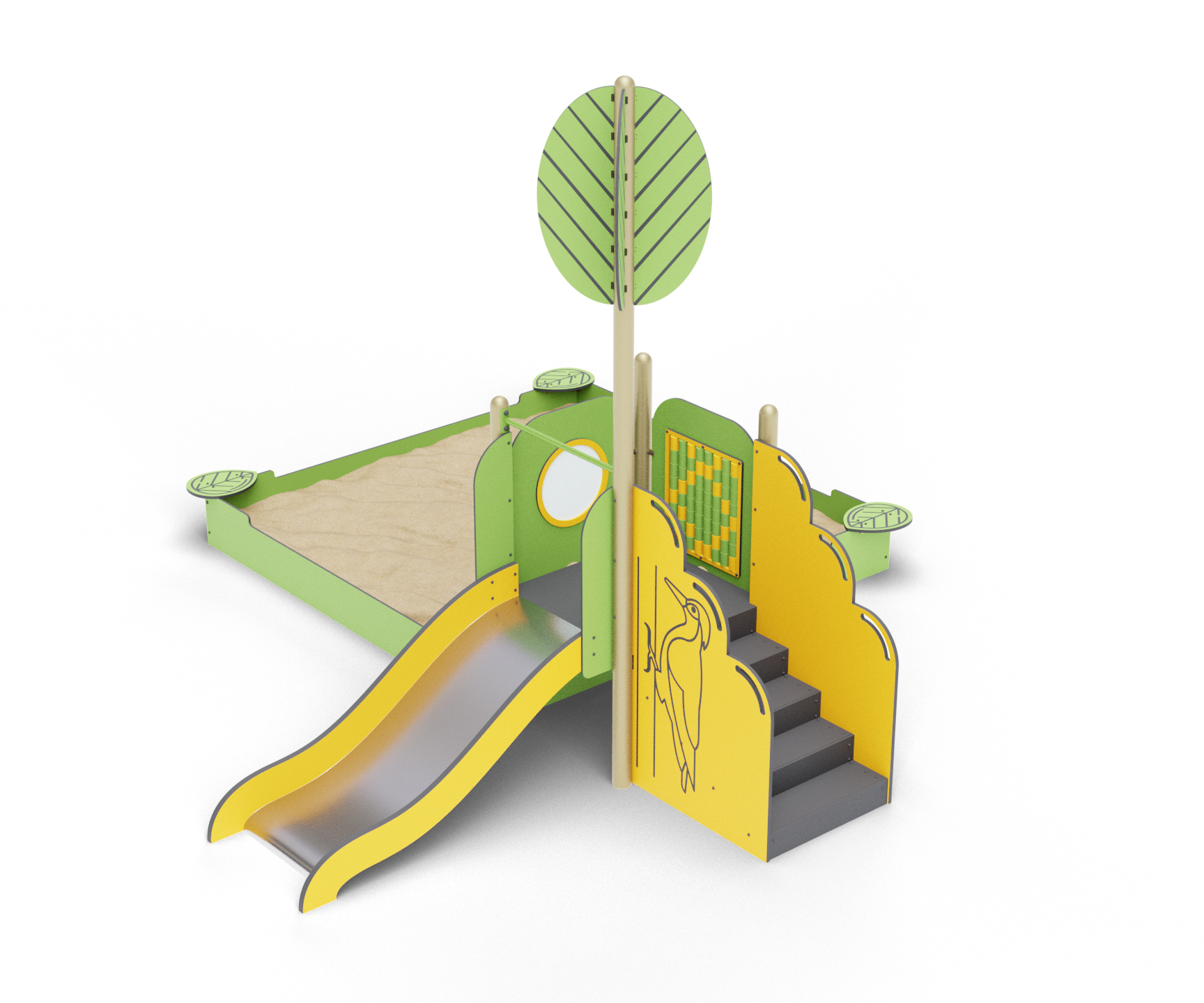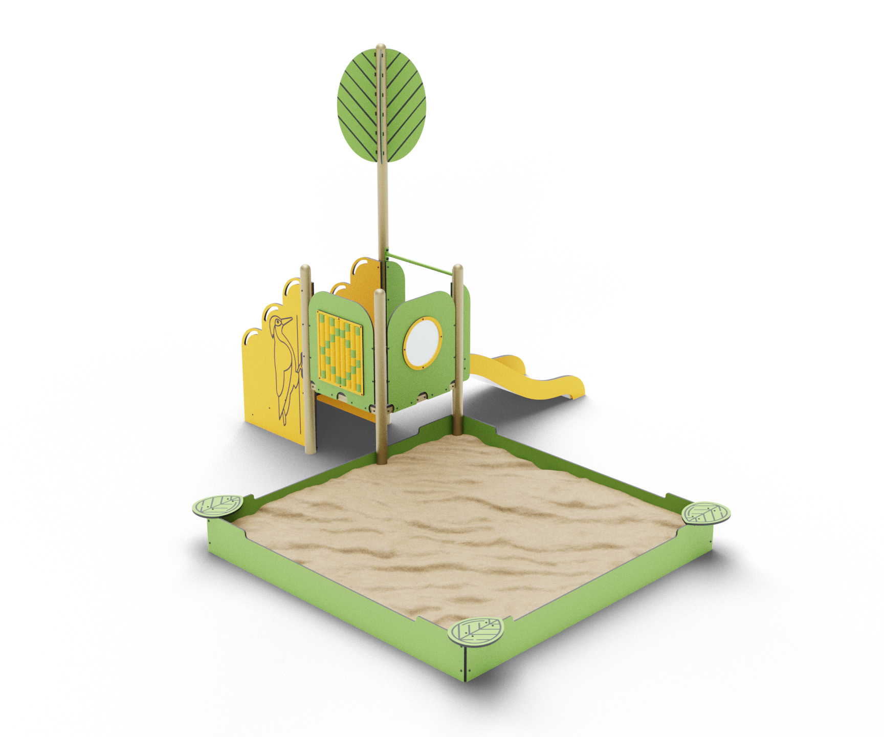 Этот комплекс игровых элементов в стиле «Лес Чудес» объединяет песочницу, уютный домик без крыши и захватывающую горку, предлагая детям разнообразные виды развлечений. Позвольте вашему ребенку погрузиться в мир приключений, строить замки из песка, спускаться с горки и воплощать свои фантазии в уютном уголке.