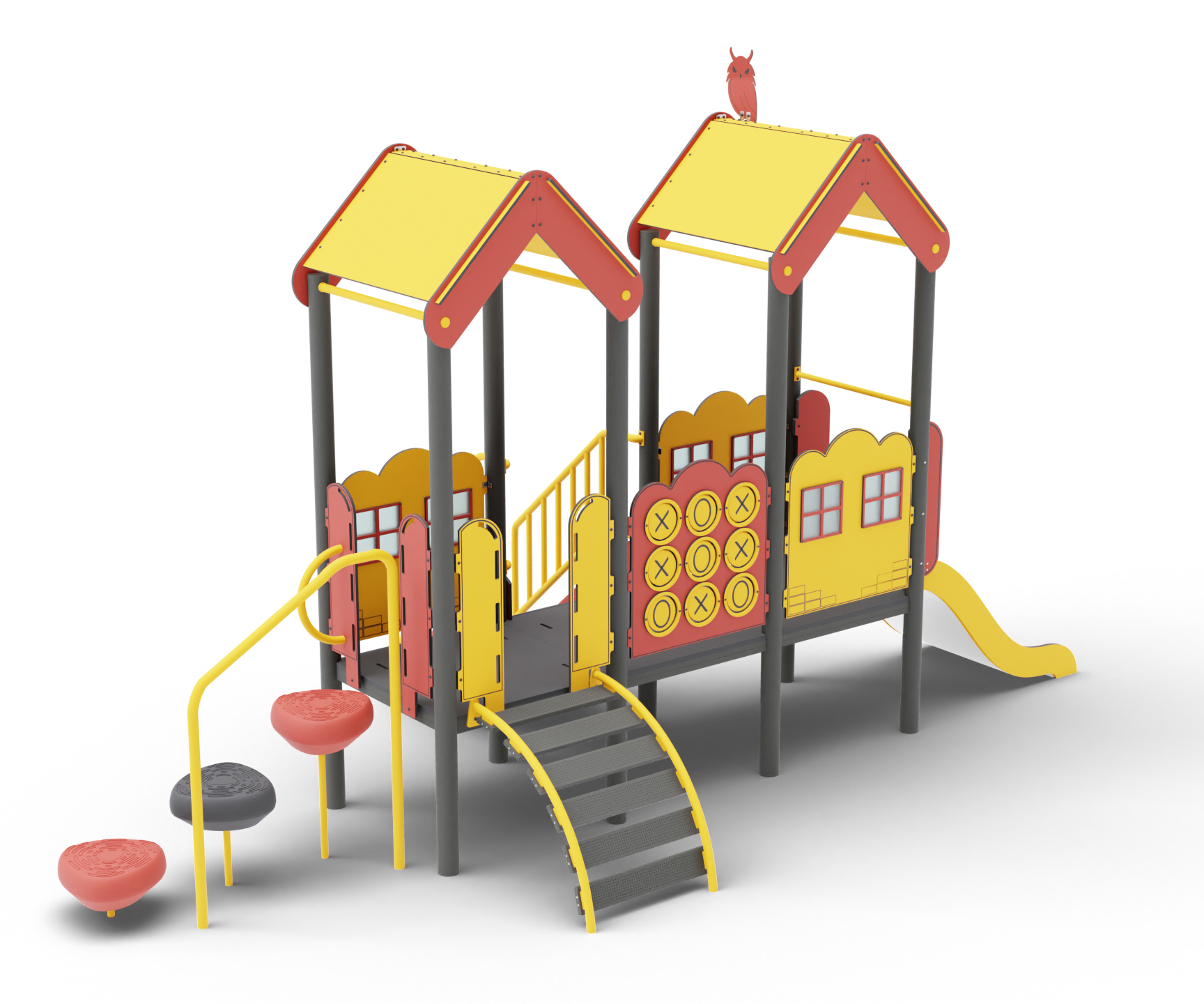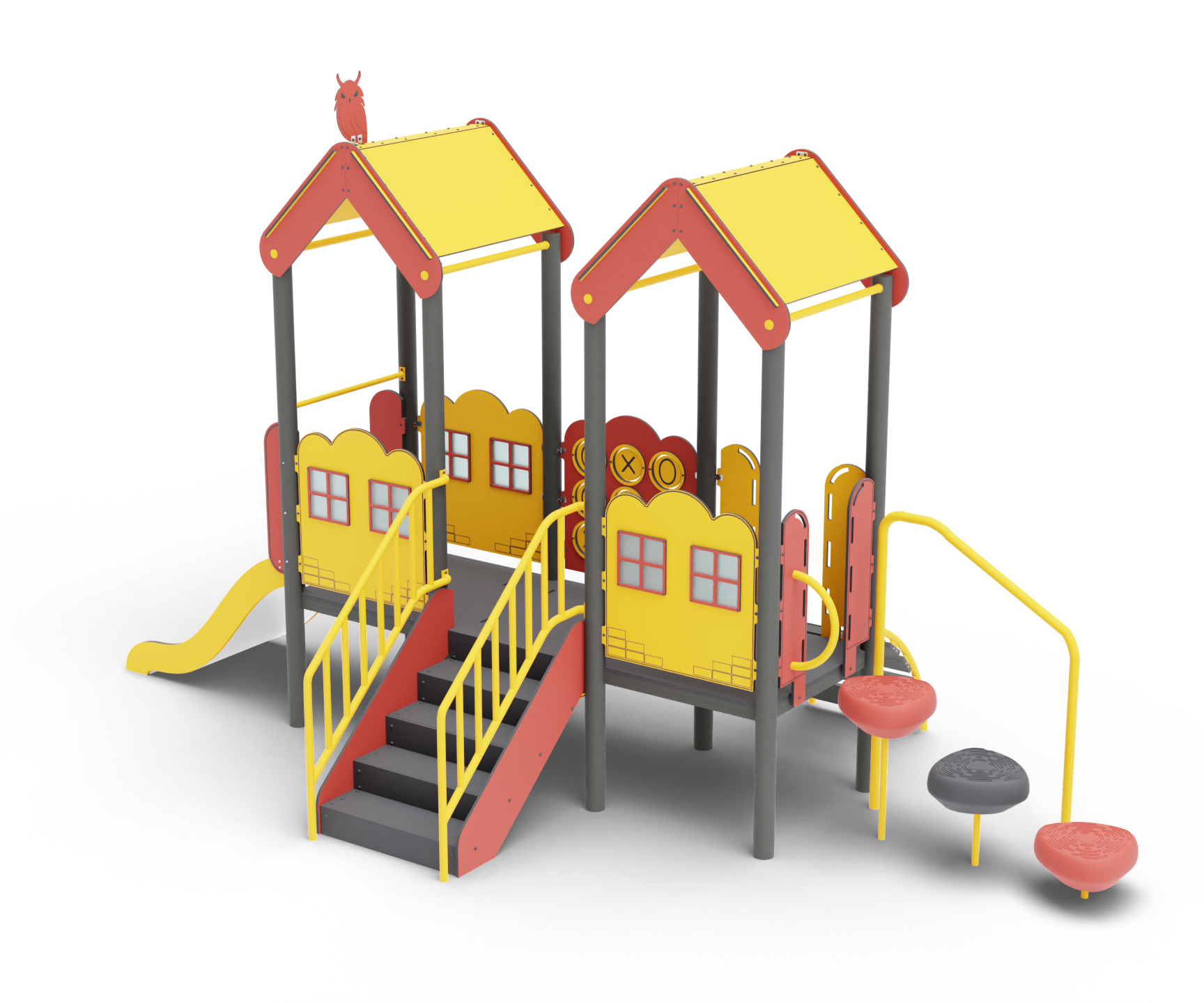 Этот детский игровой комплекс предлагает горку с тремя видами подъема,тренируя у детей координацию движений, и интерактивную игровую панель, способствующую развитию моторики и воображения у детей, делая игру еще более увлекательной и интересной.