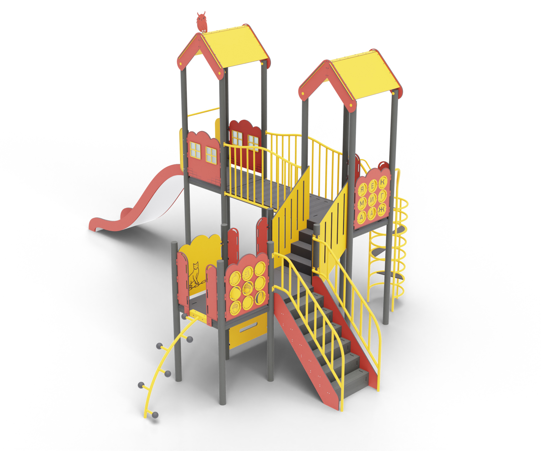 Этот уникальный комплекс предлагает разнообразные игровые возможности, включая горку с тремя различными способами подъема и интерактивные игровые панели, которые захватят внимание каждого маленького исследователя.