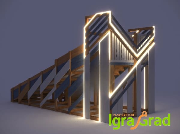 - Ограждение входа на горку, подсветка и подступенники являются опцией и заказываются отдельно.
