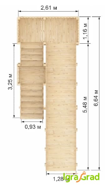 - Общая ширина площадки: 2,7 м