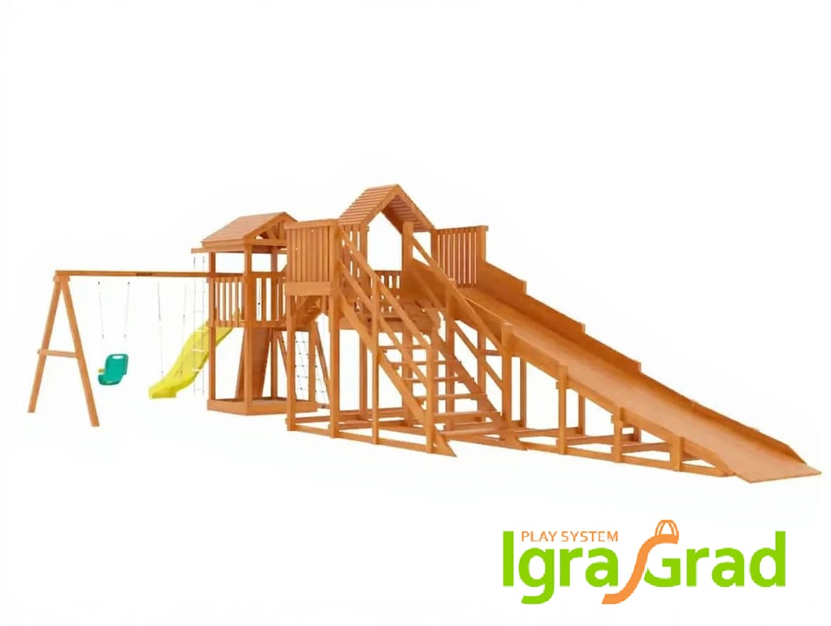 Подарите вашему ребенку незабываемые зимние каникулы! Детская деревянная горка Snow Fox 5,9 м + «Панда Фани Gride» – это идеальный выбор для активных игр на свежем воздухе, которые укрепляют здоровье и дарят массу положительных эмоций.