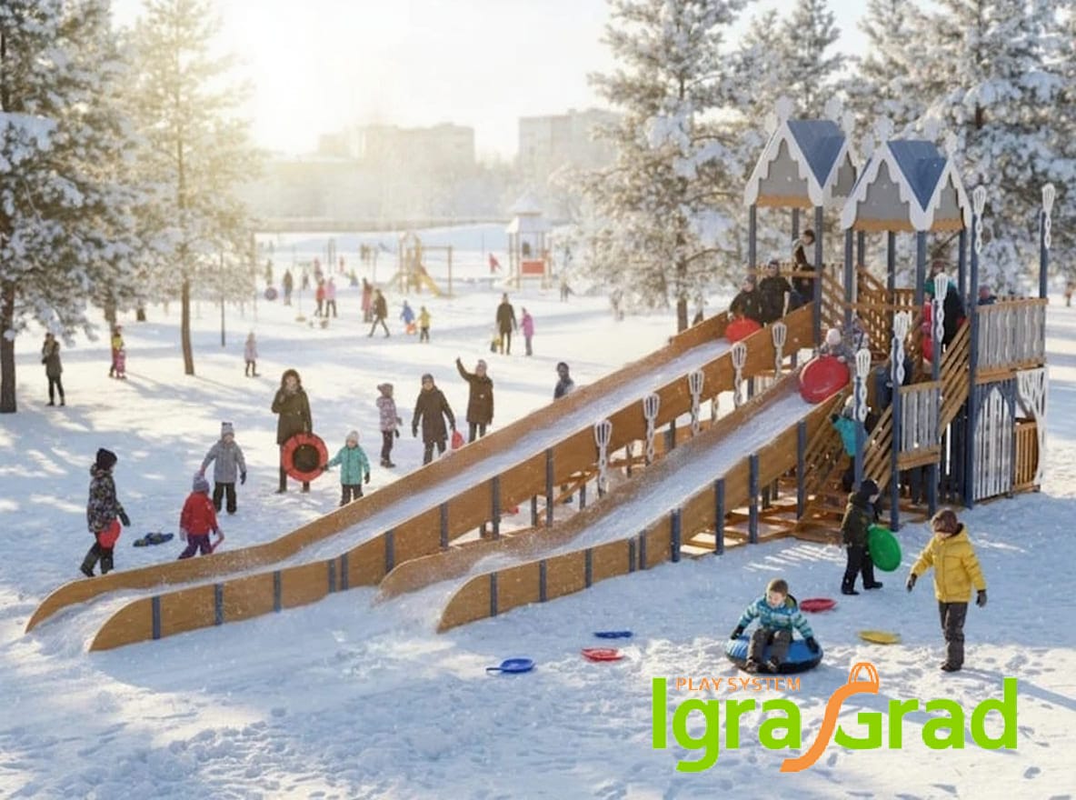 Подарите себе и своим близким незабываемые зимние впечатления с нашей уникальной деревянной горкой. «19» — это не просто горка, это настоящий зимний аттракцион, который станет центром притяжения в вашем парке, на участке или в общественном месте.