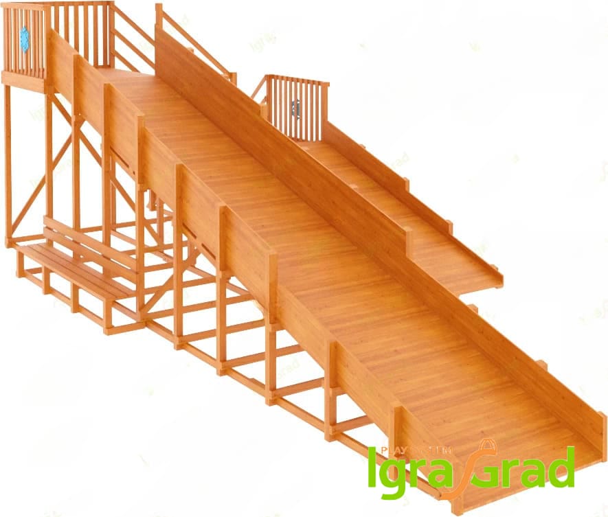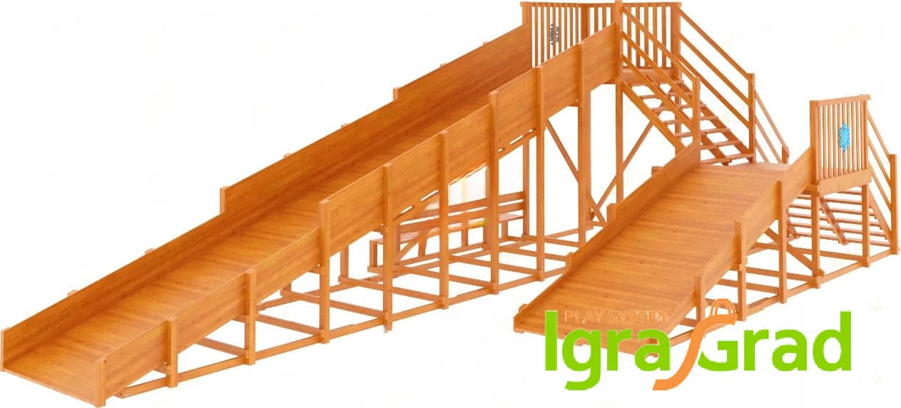 - Высокие борта ската и перила на лестнице и платформах обеспечивают безопасность при катании.