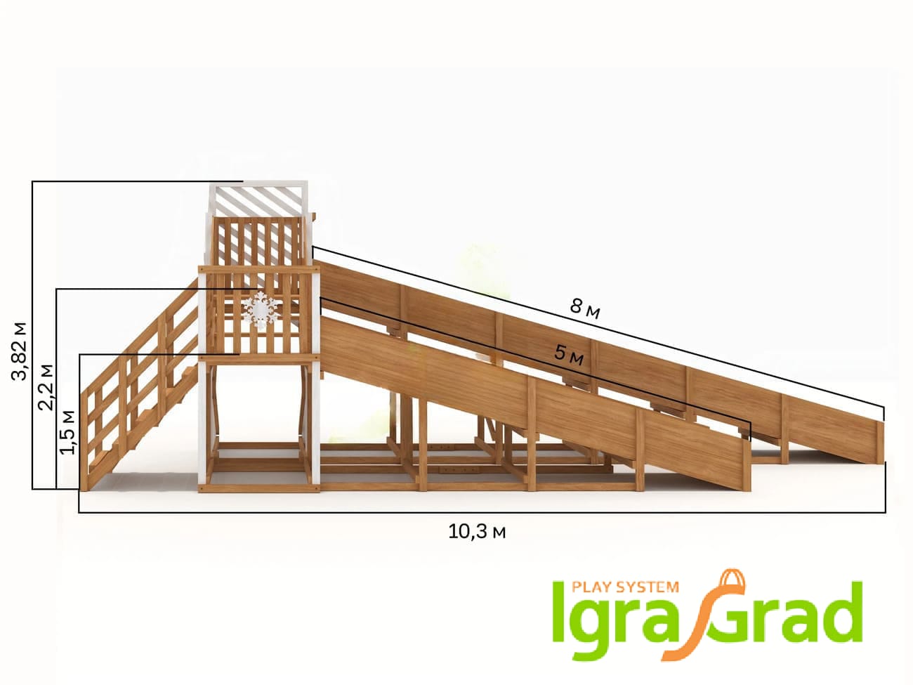 Превратите зиму в праздник для всей семьи с уникальной зимней горкой! Эта модель с двумя скатами разной длины (8 и 5 метров) подарит вашим детям и вам незабываемые впечатления и море радости!
