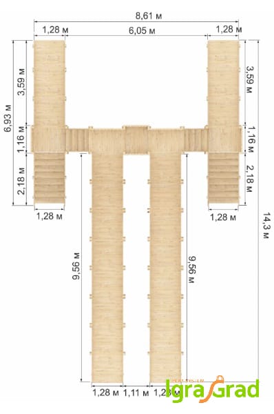 - Общая длина площадки: 14,3 м