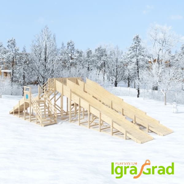 Зима – время радости, снега и, конечно же, катания с горок! Предлагаем вам деревянную зимнюю горку Snow Fox с четырьмя скатами, которая станет центром зимних развлечений на вашем участке, в детском саду, школе или развлекательном комплексе.
