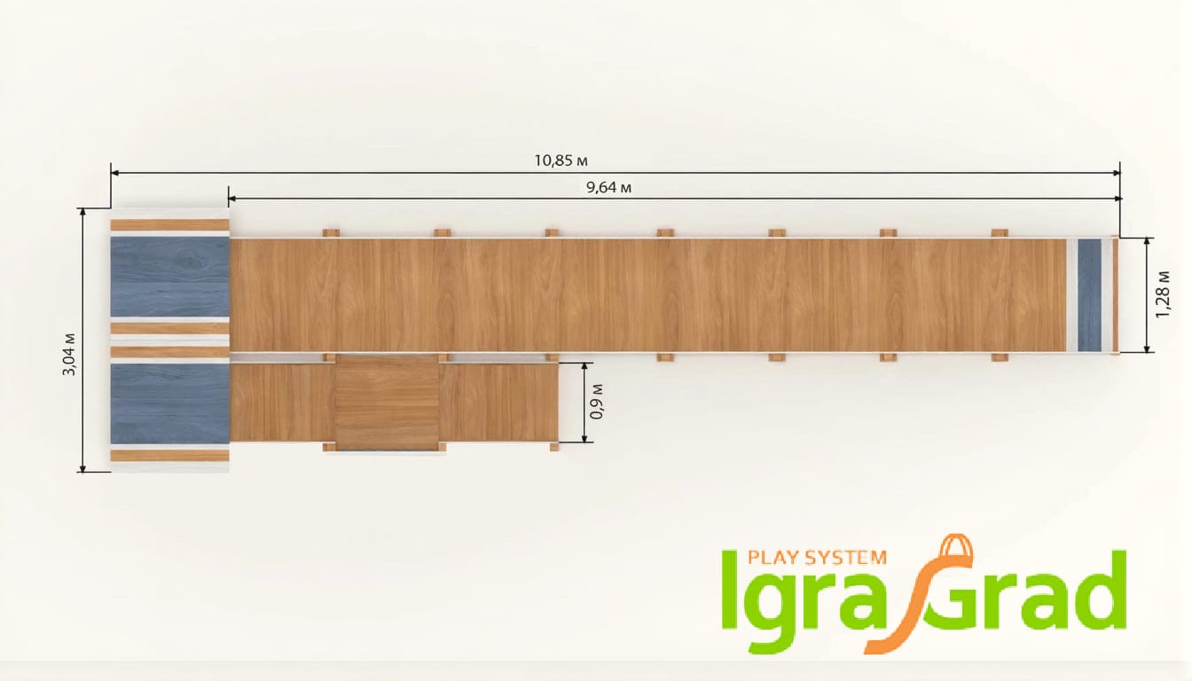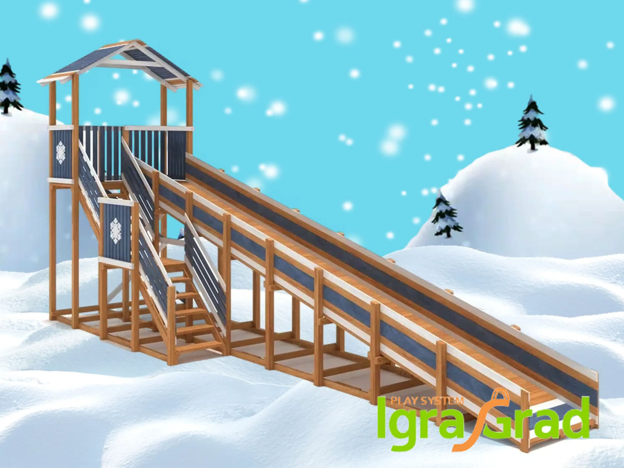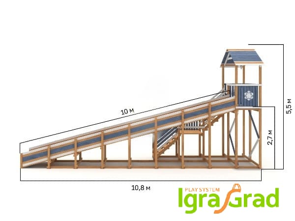 - Защита от падения: Борта ската и высокие перила на лестнице и платформах гарантируют безопасность даже при большом количестве катающихся.