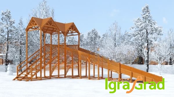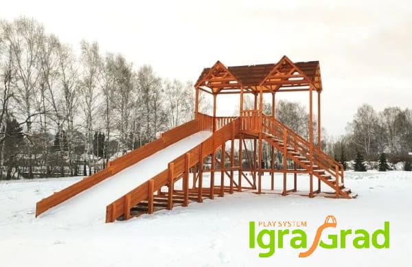 Мы предлагаем решение – зимнюю деревянную горку Snow Fox Макси! Благодаря продуманному дизайну, она идеально впишется в пространство детского сада, городского парка, двора многоэтажки или даже небольшого участка возле дачи.