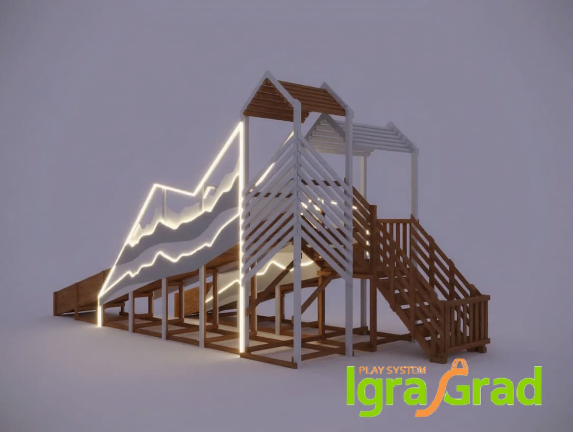 - Волшебная атмосфера: (Опционально) Встроенная светодиодная подсветка вдоль скатов создает завораживающее зрелище, превращая каждое катание в сказку.